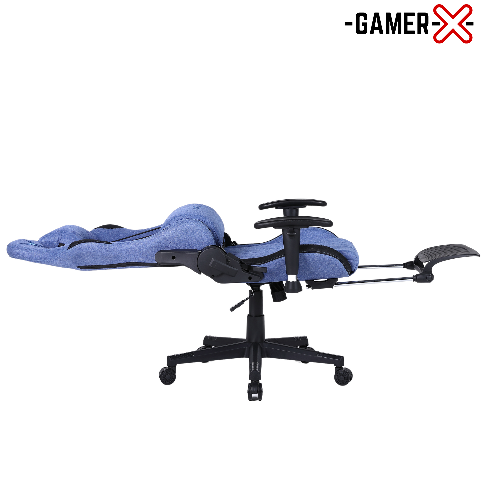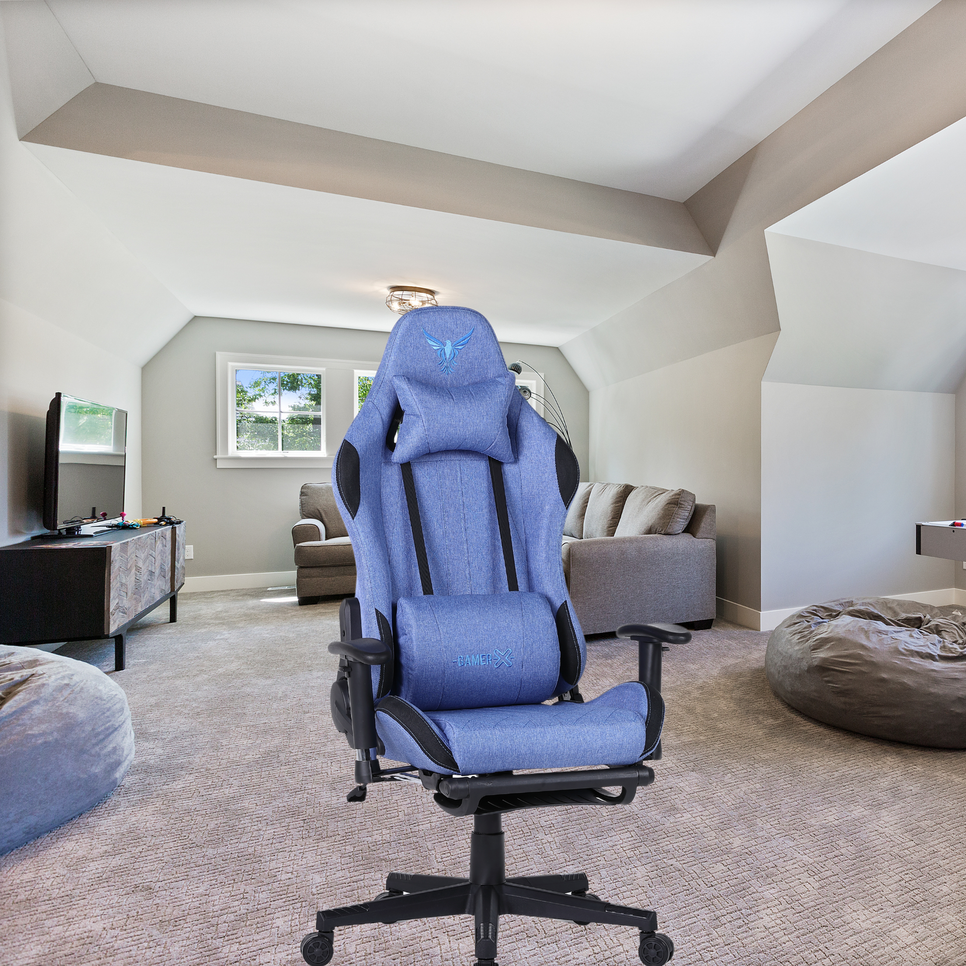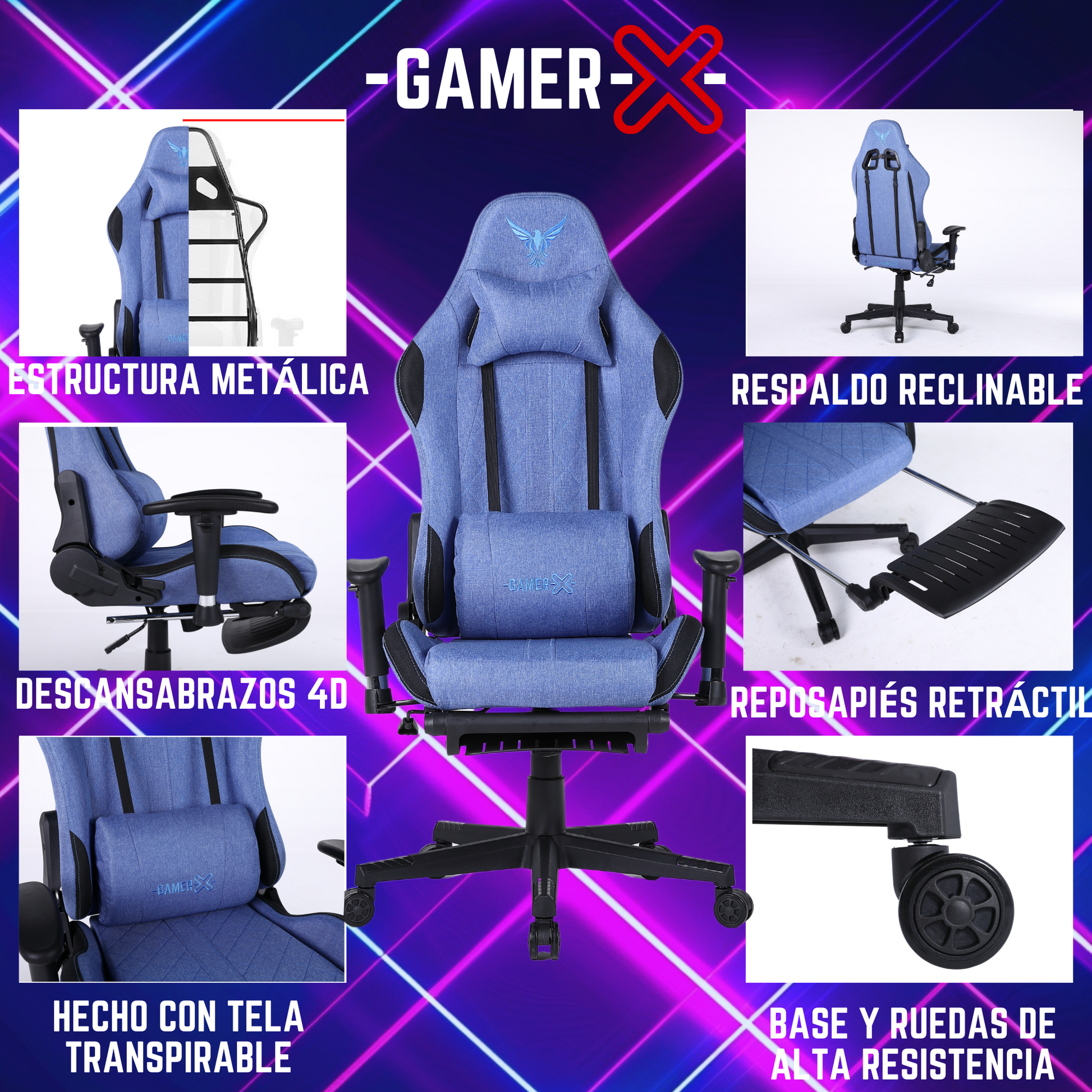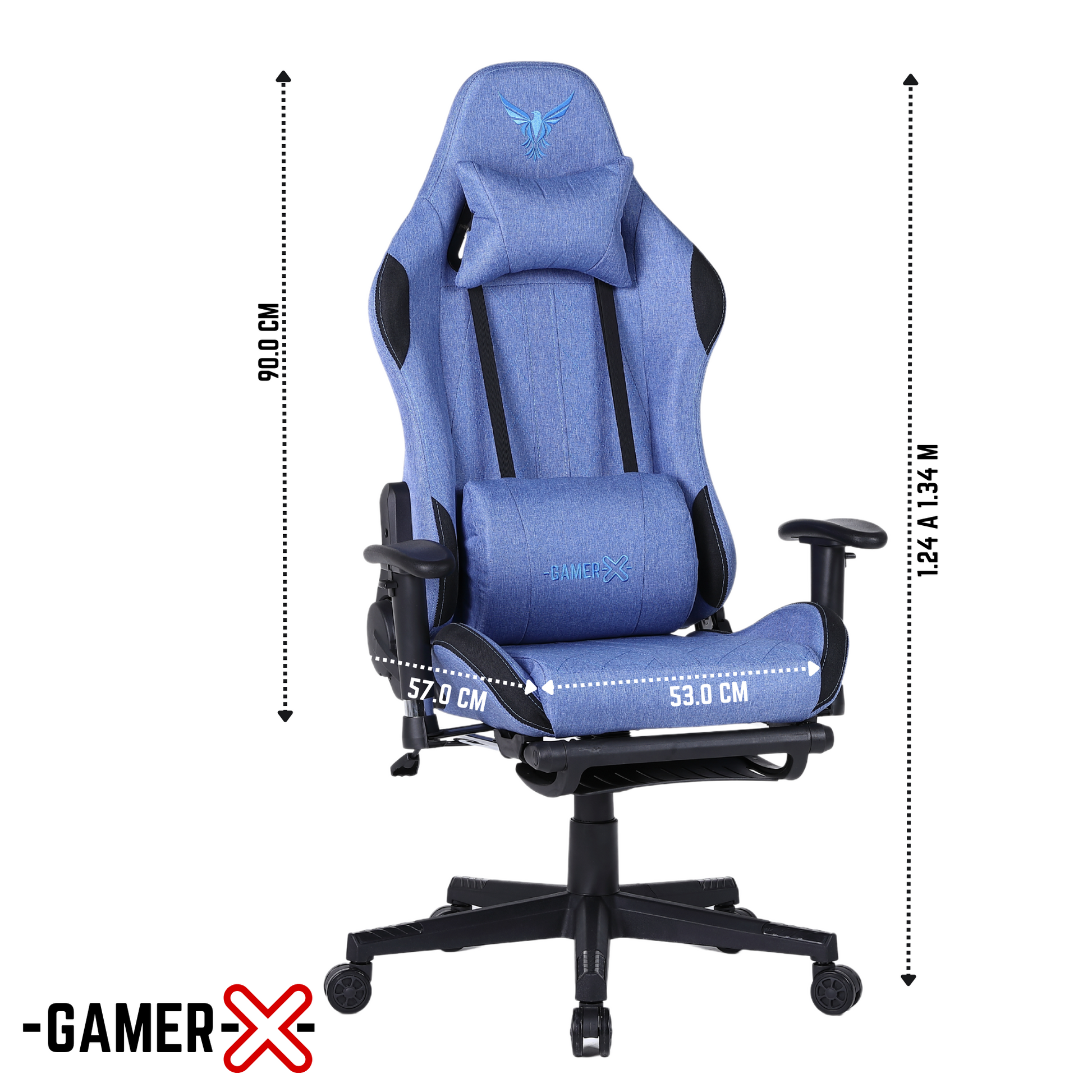 Silla Gamer Ergonómica Escritorio de Tela Transpirable con Reposapiés y Soporte Lumbar (Azul)