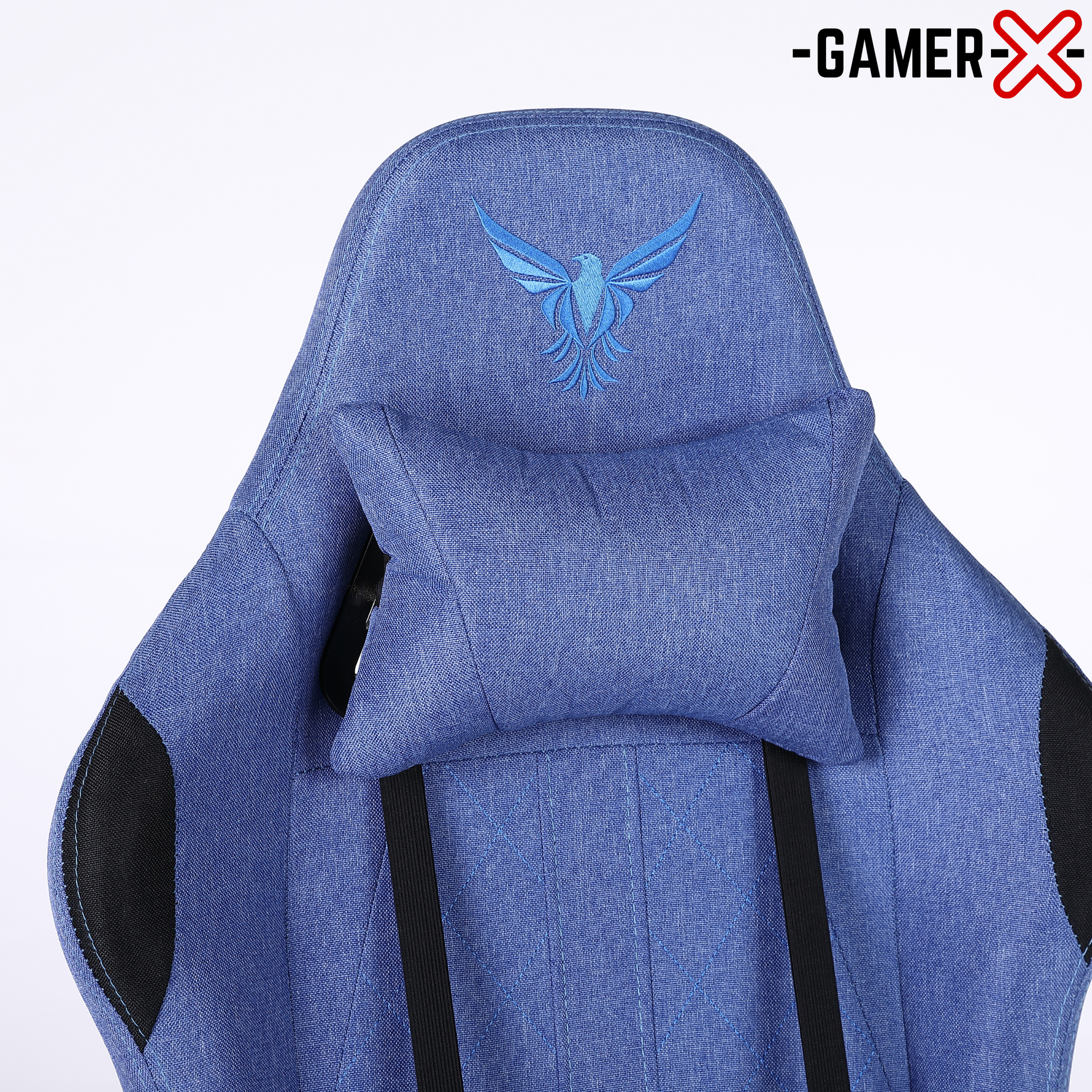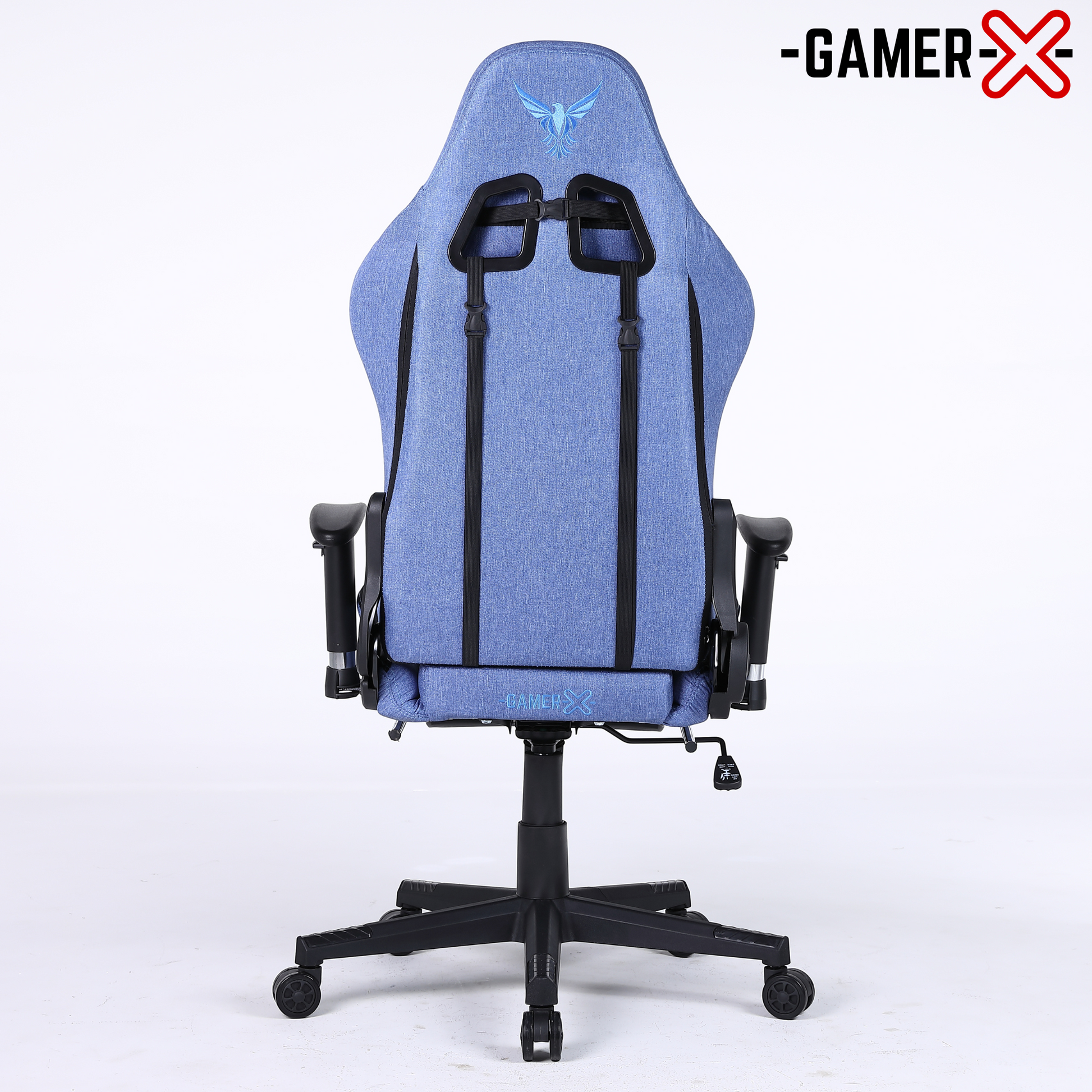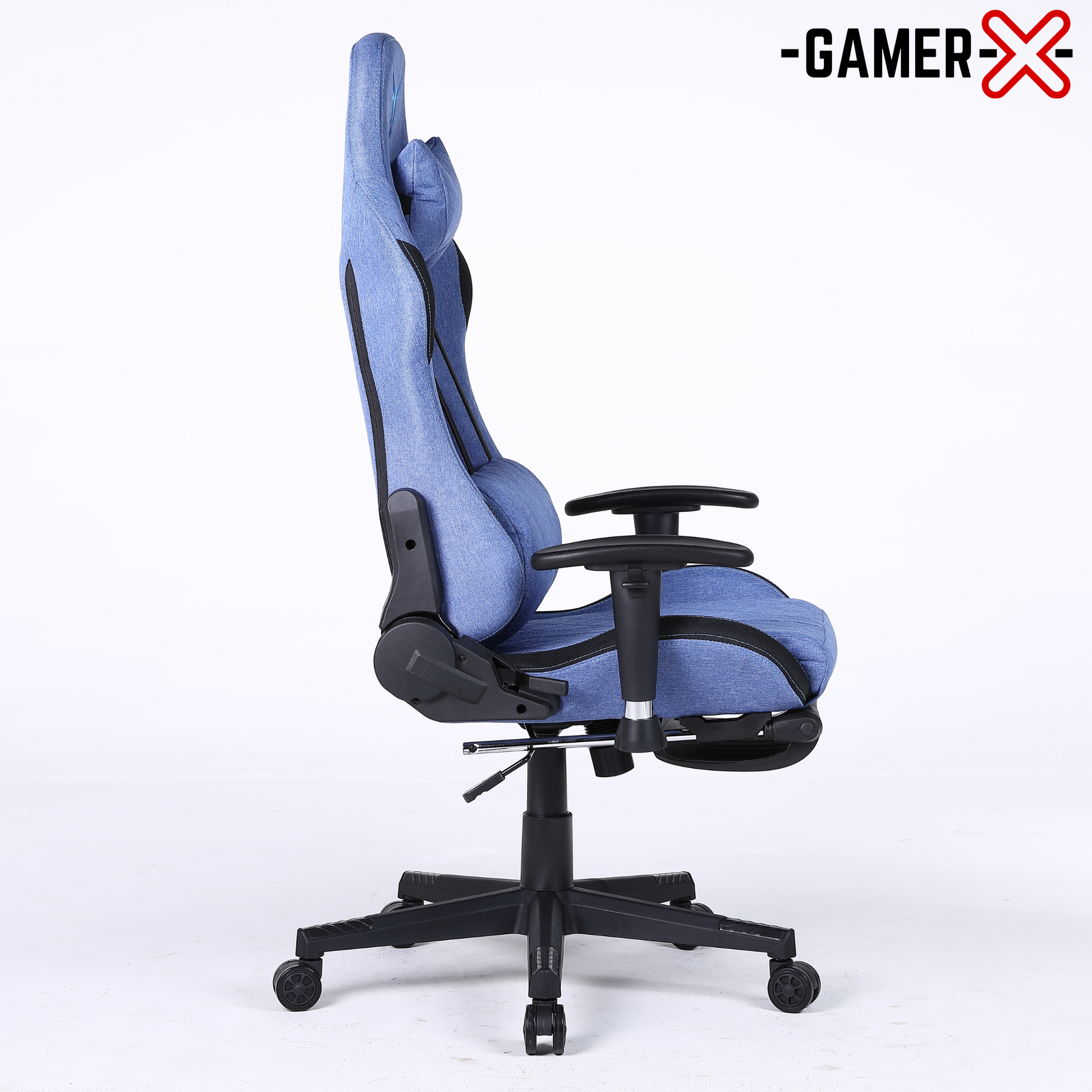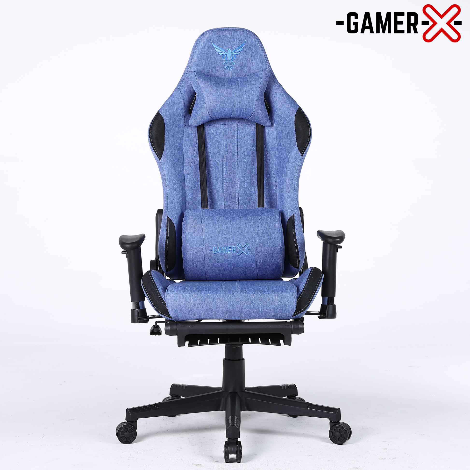 Silla Gamer Ergonómica Escritorio de Tela Transpirable con Reposapiés y Soporte Lumbar (Azul)